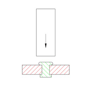 采用油壓或氣壓驅(qū)動,沖頭到工件鉚接部位產(chǎn)生直向壓力鉚接。適用于技術(shù)要求相對較低,允許零部件壓死的產(chǎn)品;反之,如產(chǎn)品零部件要求保持滑動,則不推薦使用此類工藝進行鉚接。