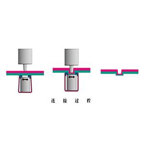 無鉚釘鉚接是一項鈑件沖壓鏈接核心技術(shù)。采用氣液增壓缸式?jīng)_壓設(shè)備和專用的標準連接模具,利用鈑材材料本身的塑性變形,通過一個沖壓過程,即可在連接處形成一個互相鑲嵌的圓點,由此將鈑件連接起來。該鉚接點不損傷工件表面的鍍層或漆層,連接點保持鈑件原有的抗腐蝕性。